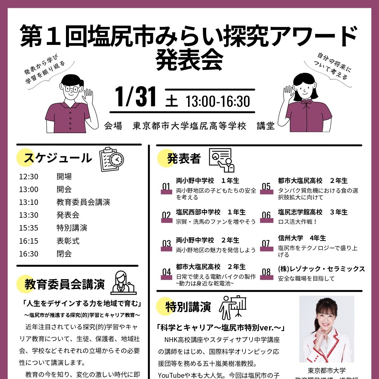 第1回塩尻市みらい探究アワード発表会 ぜひご参加ください!