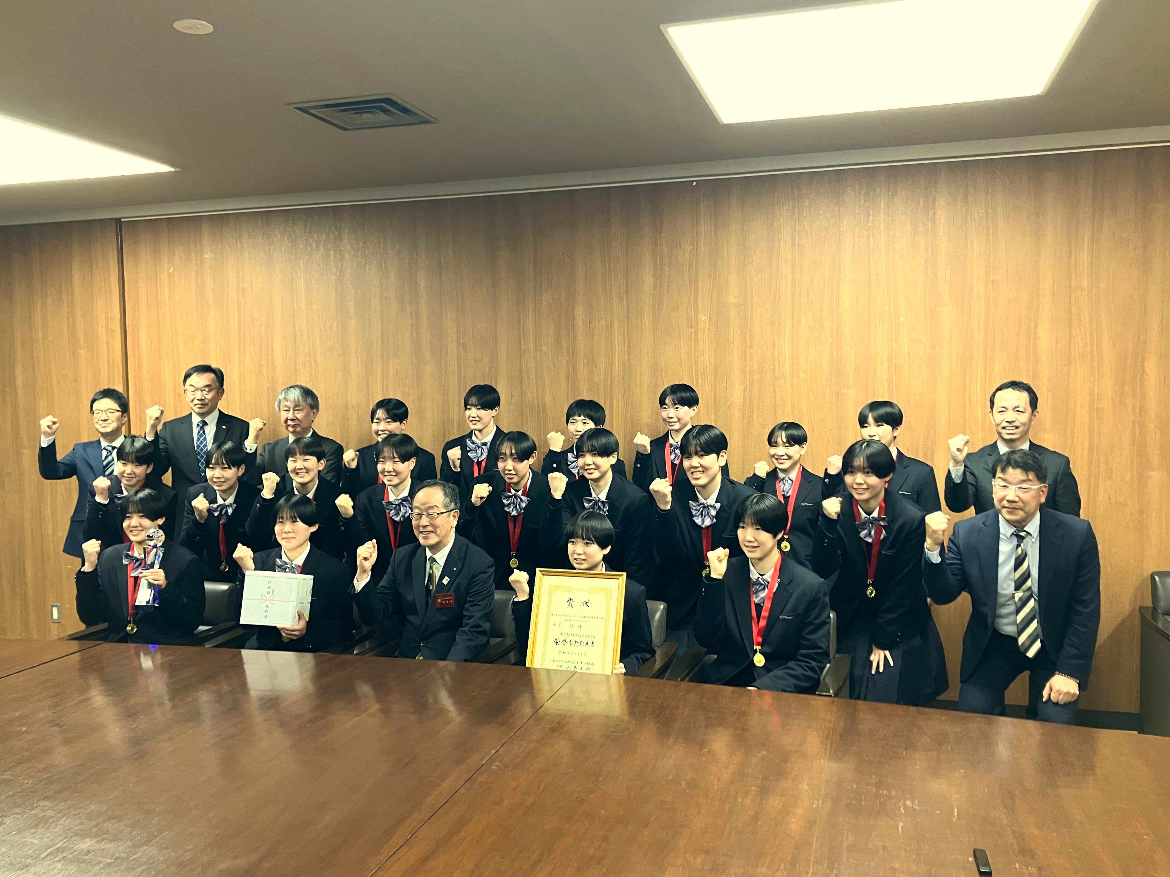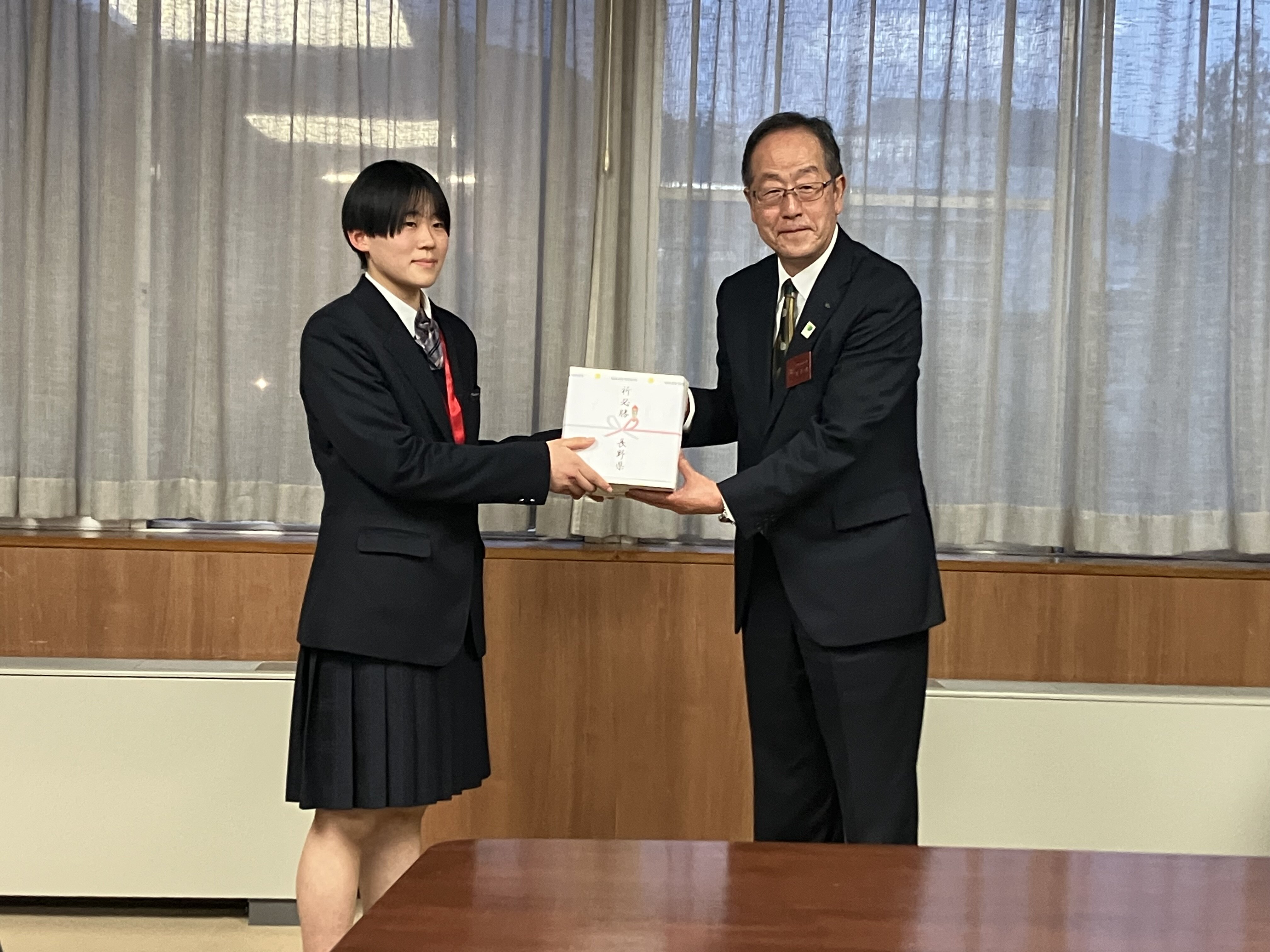 さらにキャプテンから「集大成となる舞台なので、全力でプレーして目標である日本一を掴みます」と強い決意表明がなされると、関副知事からは「みなさんの活躍は県民を大いに励まして、応援する者に力を与えてくれています。同様に選手のみなさんも県民からの応援を力に変えて、全国の舞台で大いに活躍してほしいと思います」と温かい励ましのお言葉をいただきました。長野県民の皆様の応援を背に最高の結果を残せるよう頑張ってまいります。