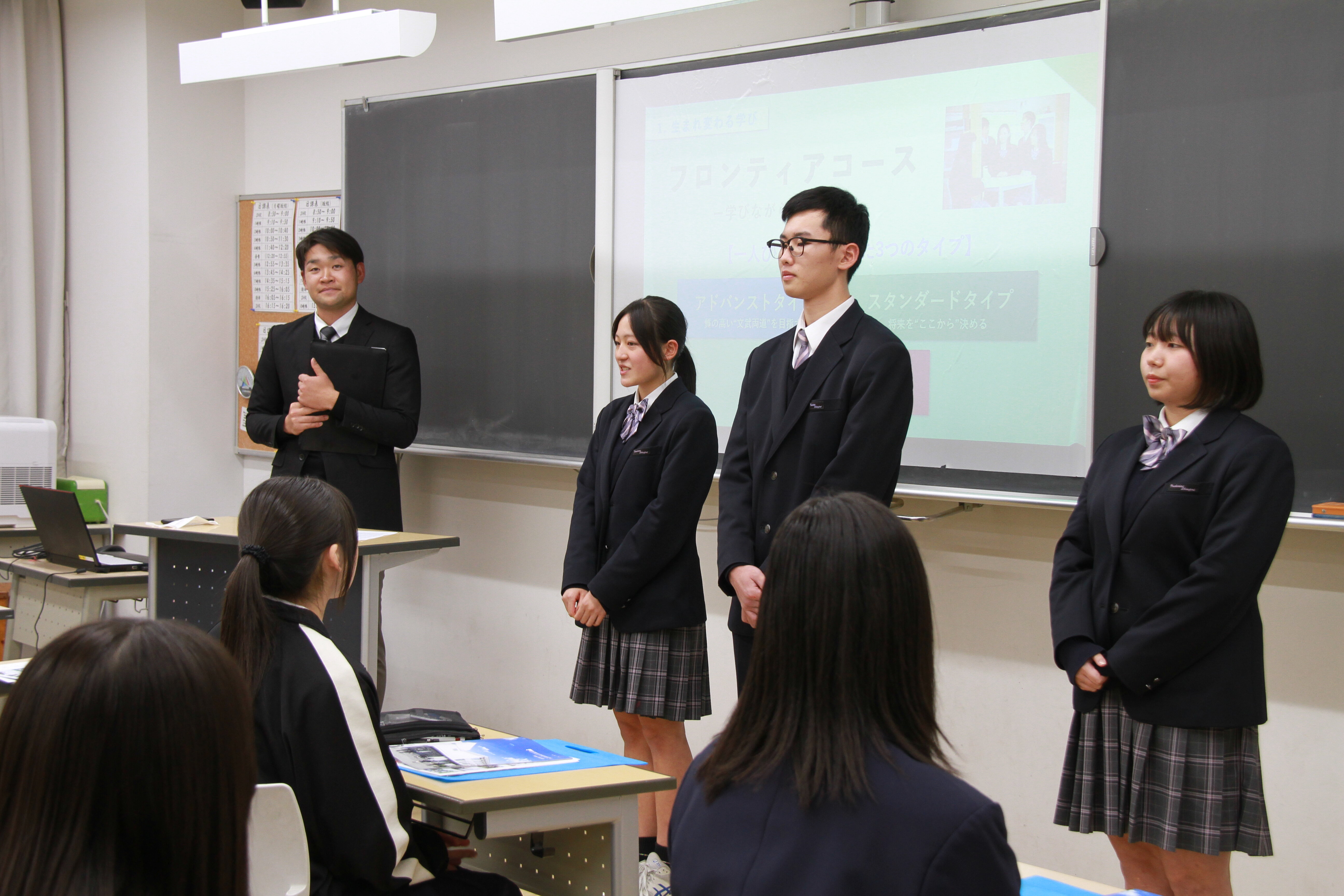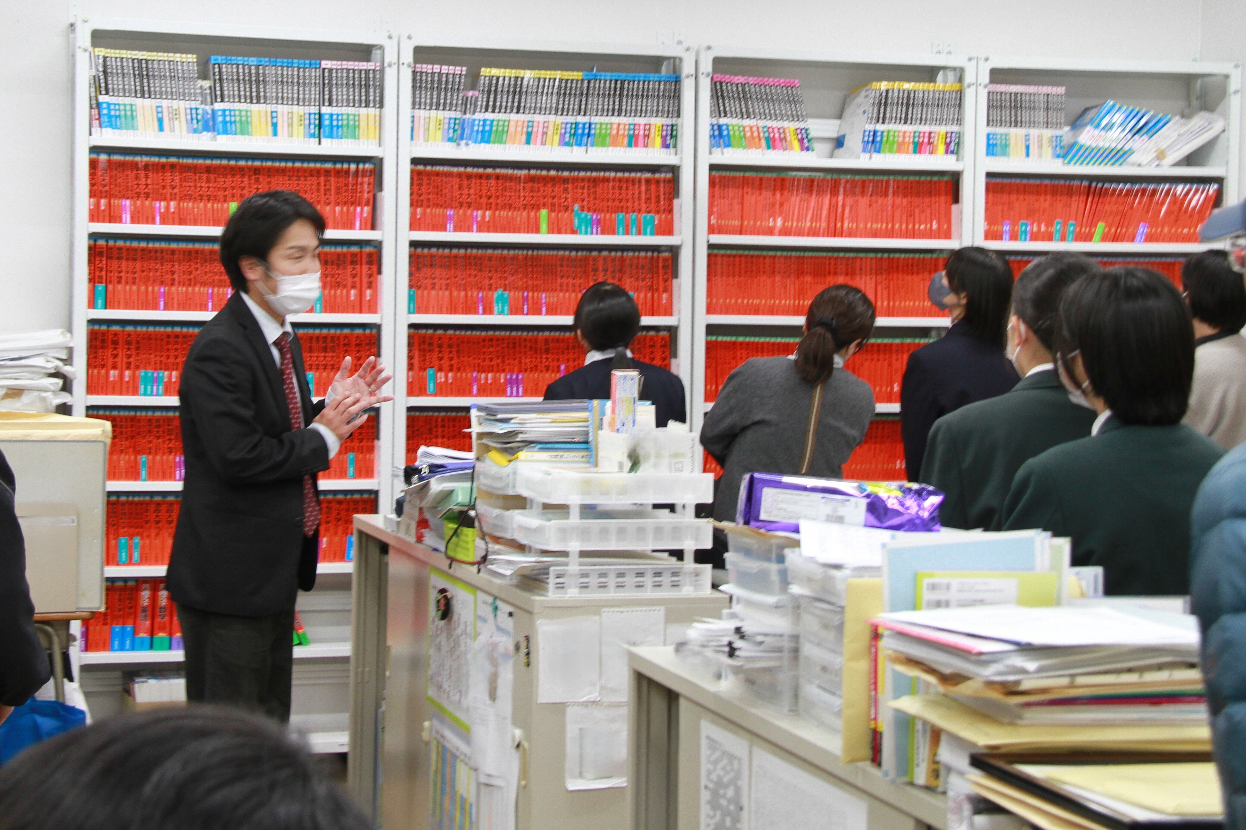 生徒会役員の生徒たちが参加者の皆様を案内、部活動が行われている教室や学習スペースにお連れして説明したり質問にお答えしながら、放課後の様子を見学していただきました。今回の企画を通して本校の学習システムや放課後の様子をわかっていただけたと思います。寒い中、また一日の終わりの夕刻に大勢の皆様にご参加いただき、ありがとうございました。