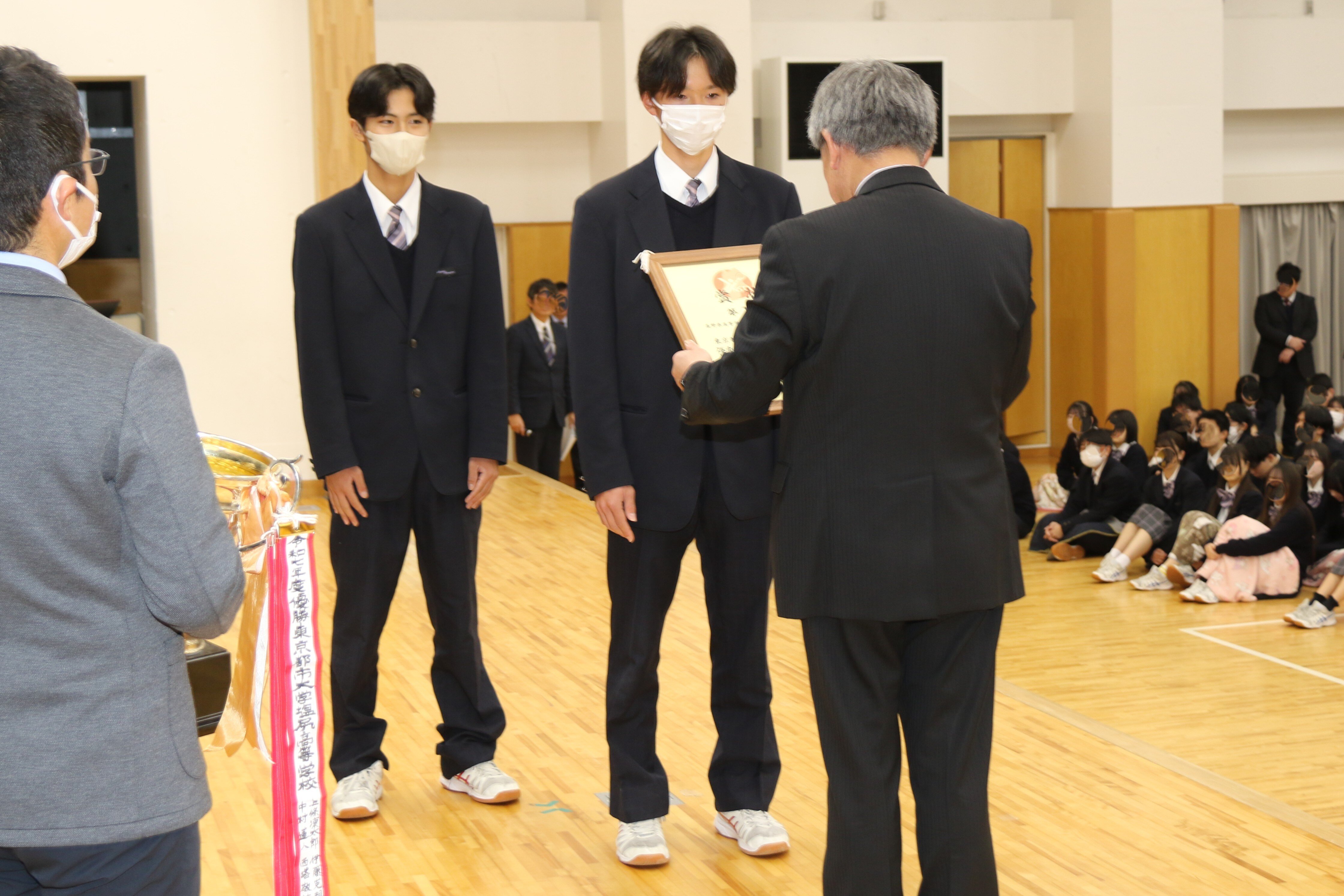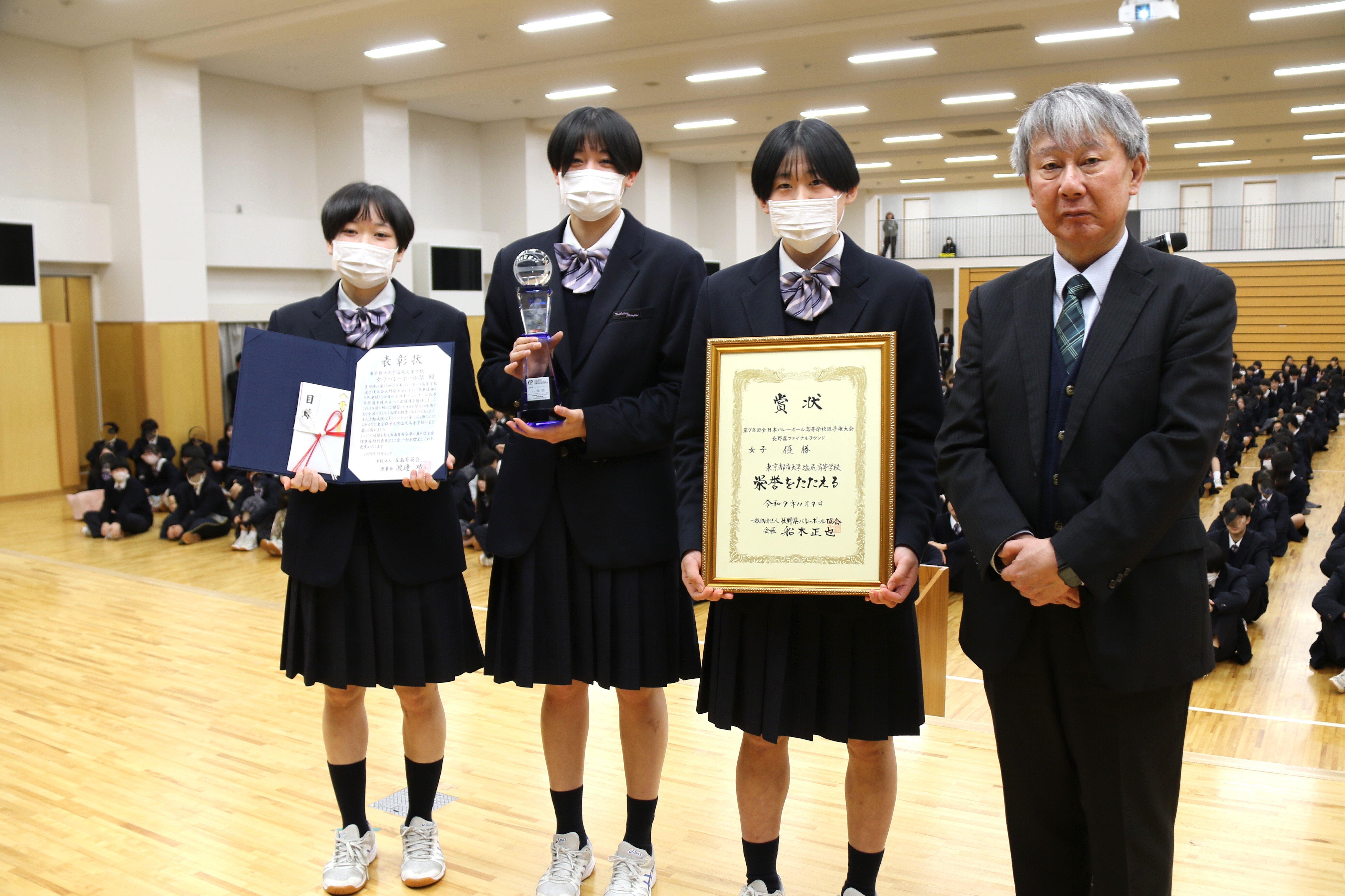12月26日、各方面で優秀な成績を残した個人や団体の顕彰会と、2学期終業式が行われました。