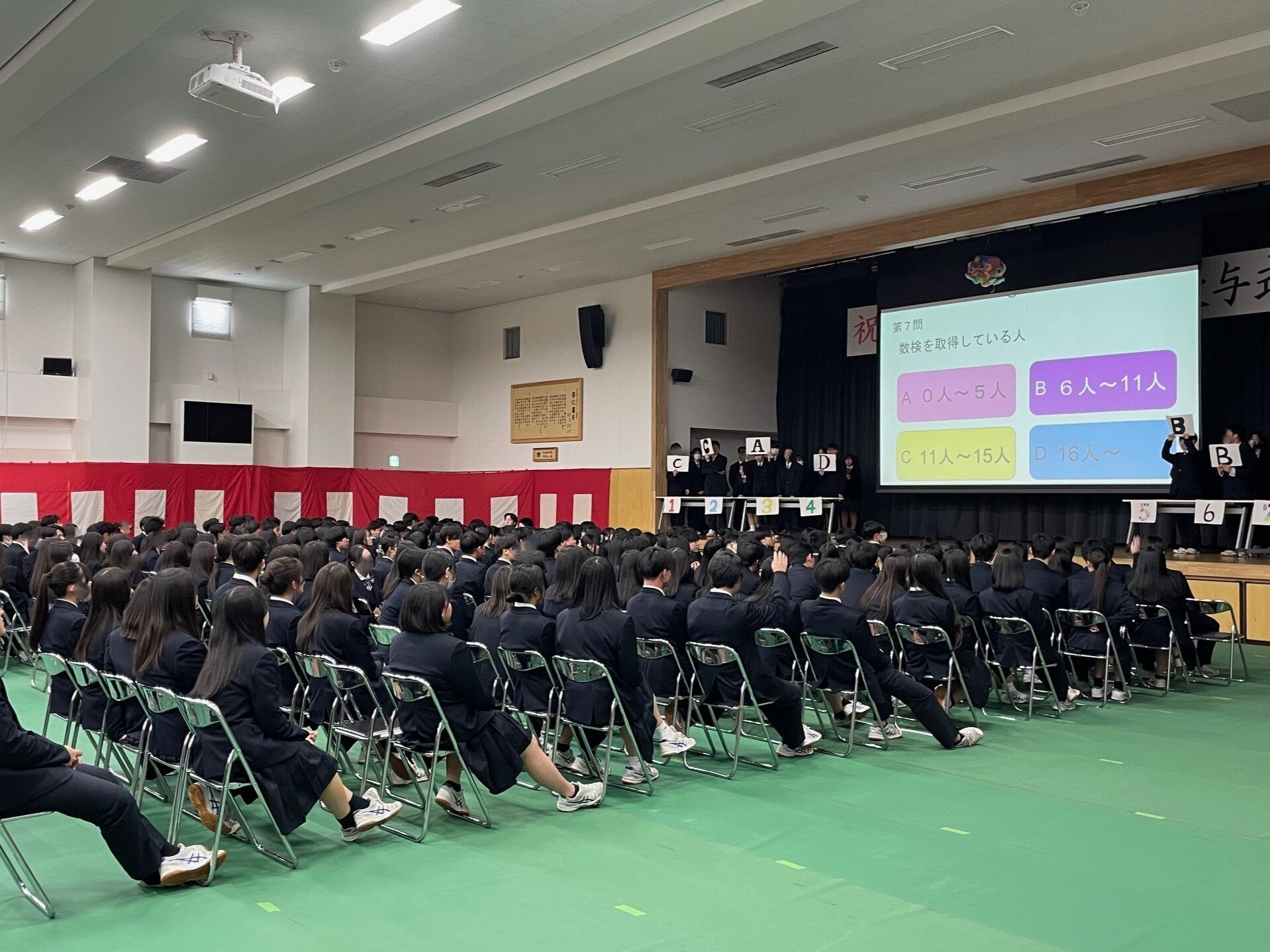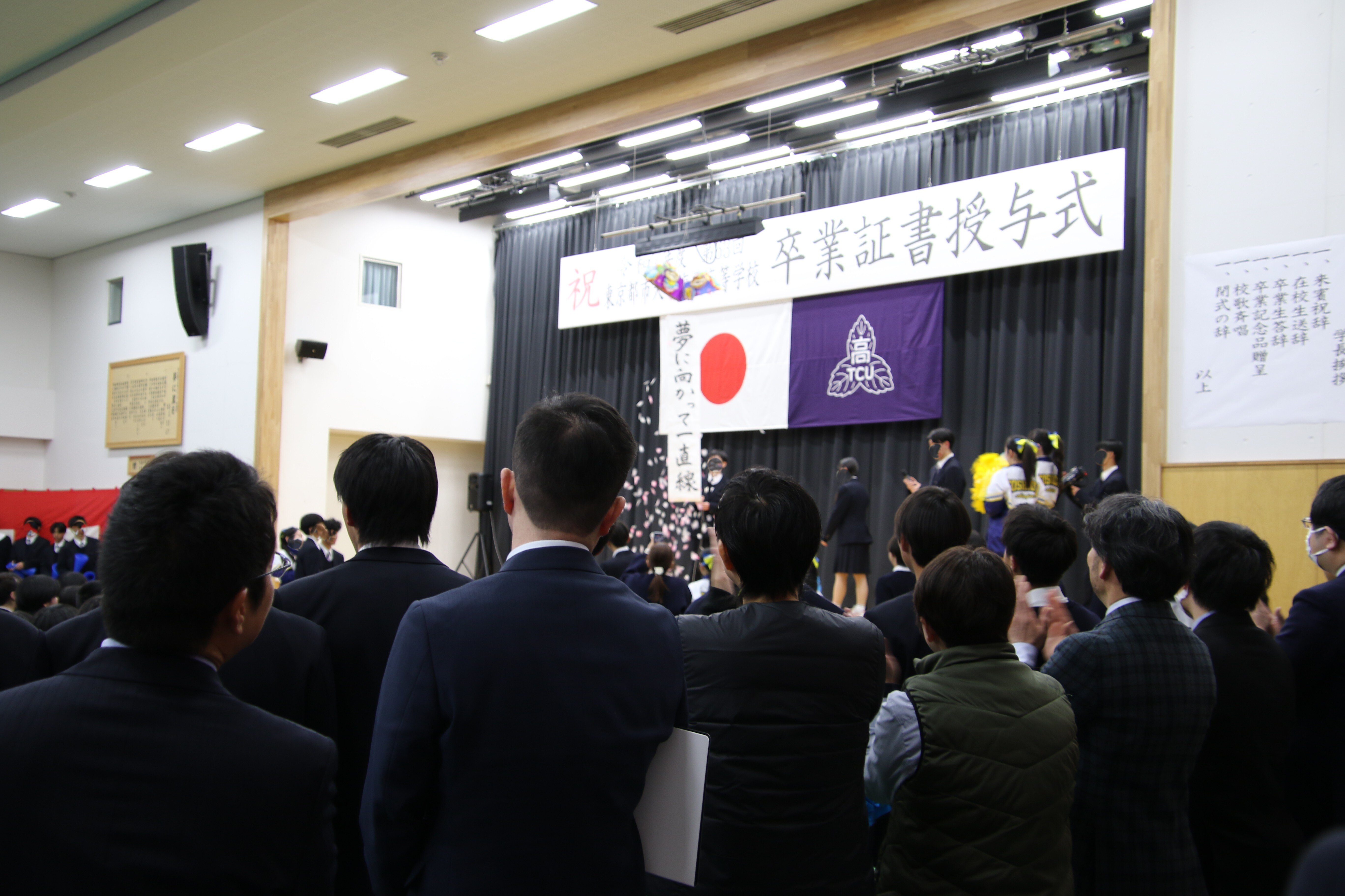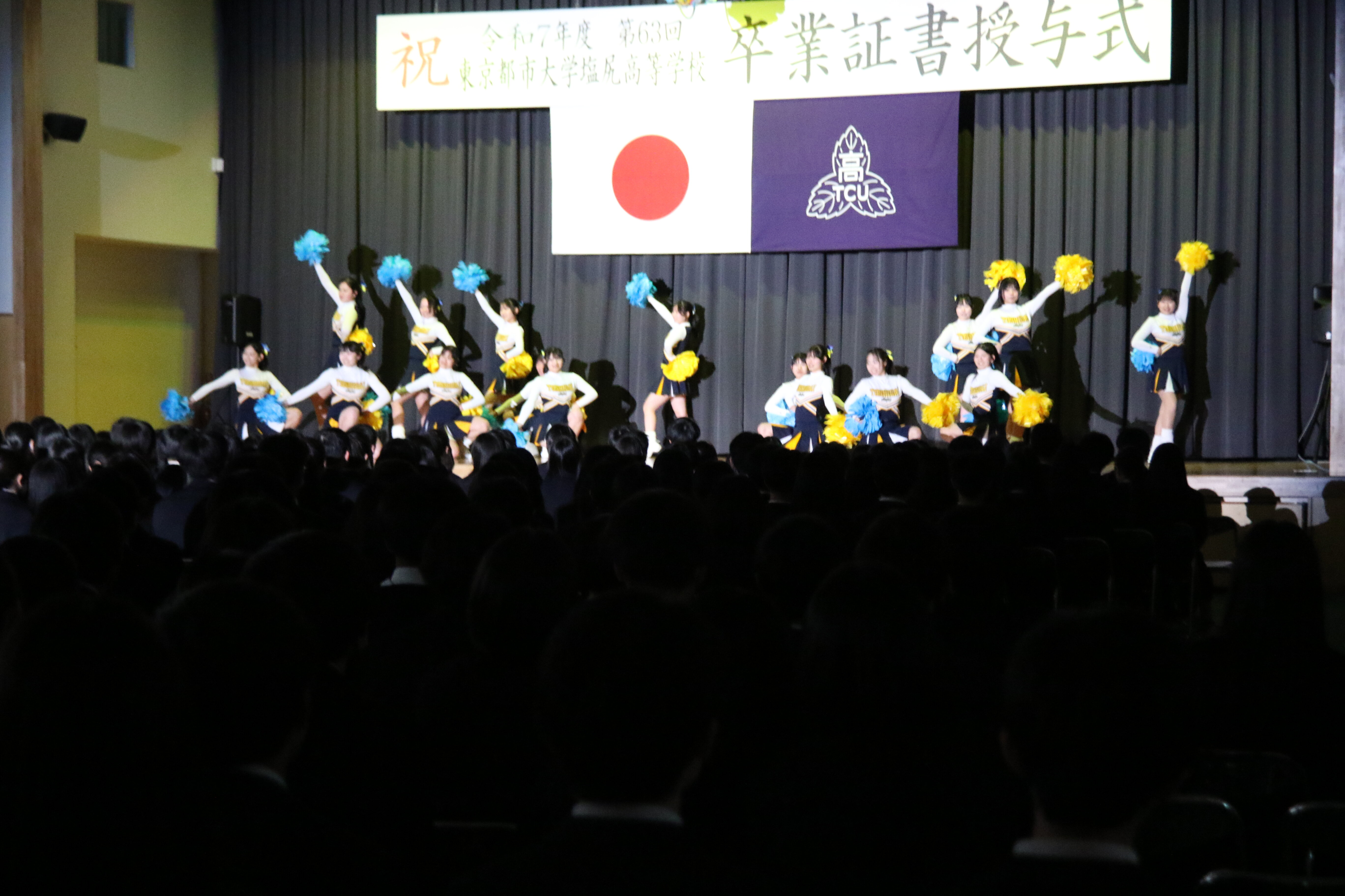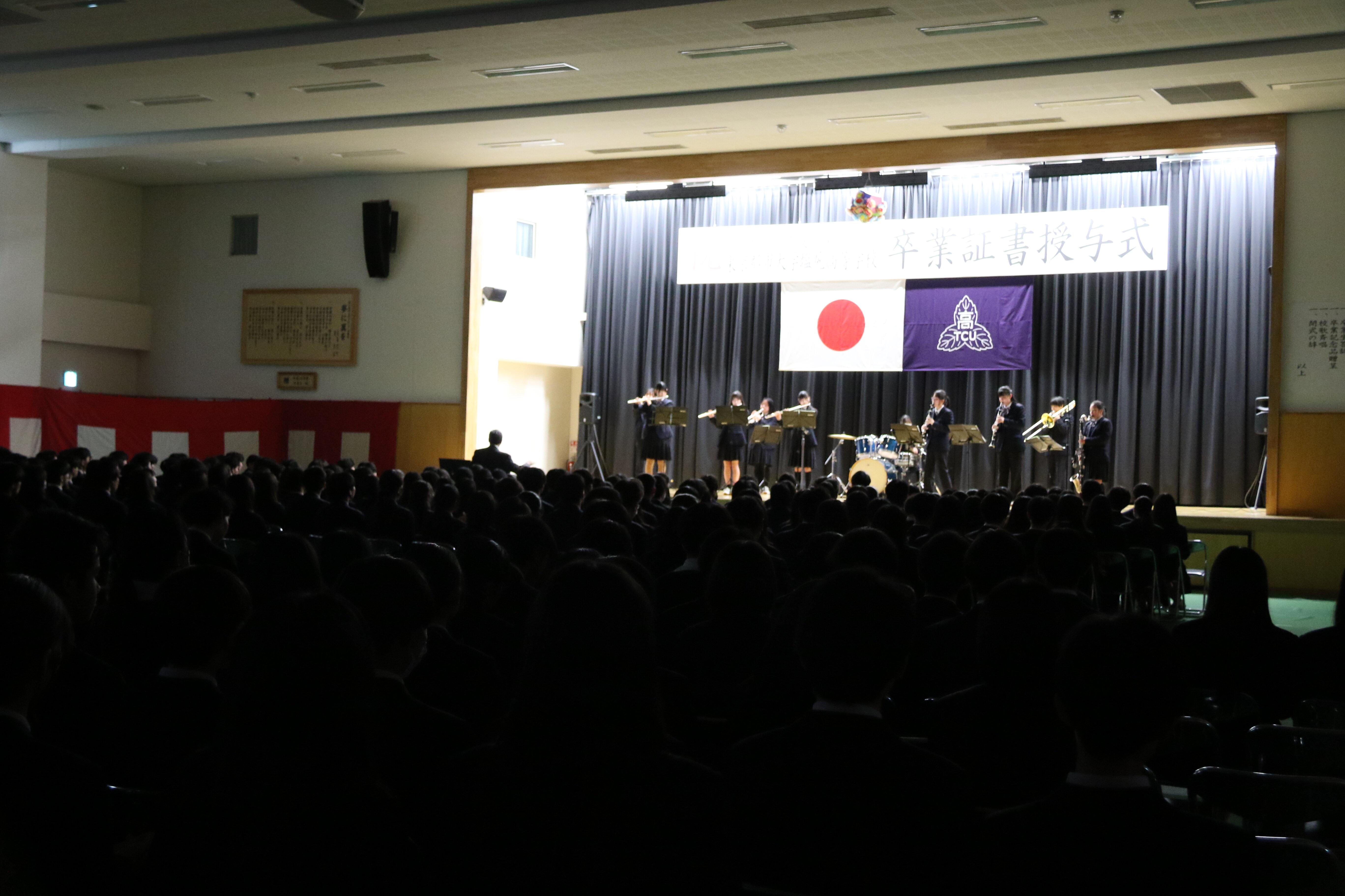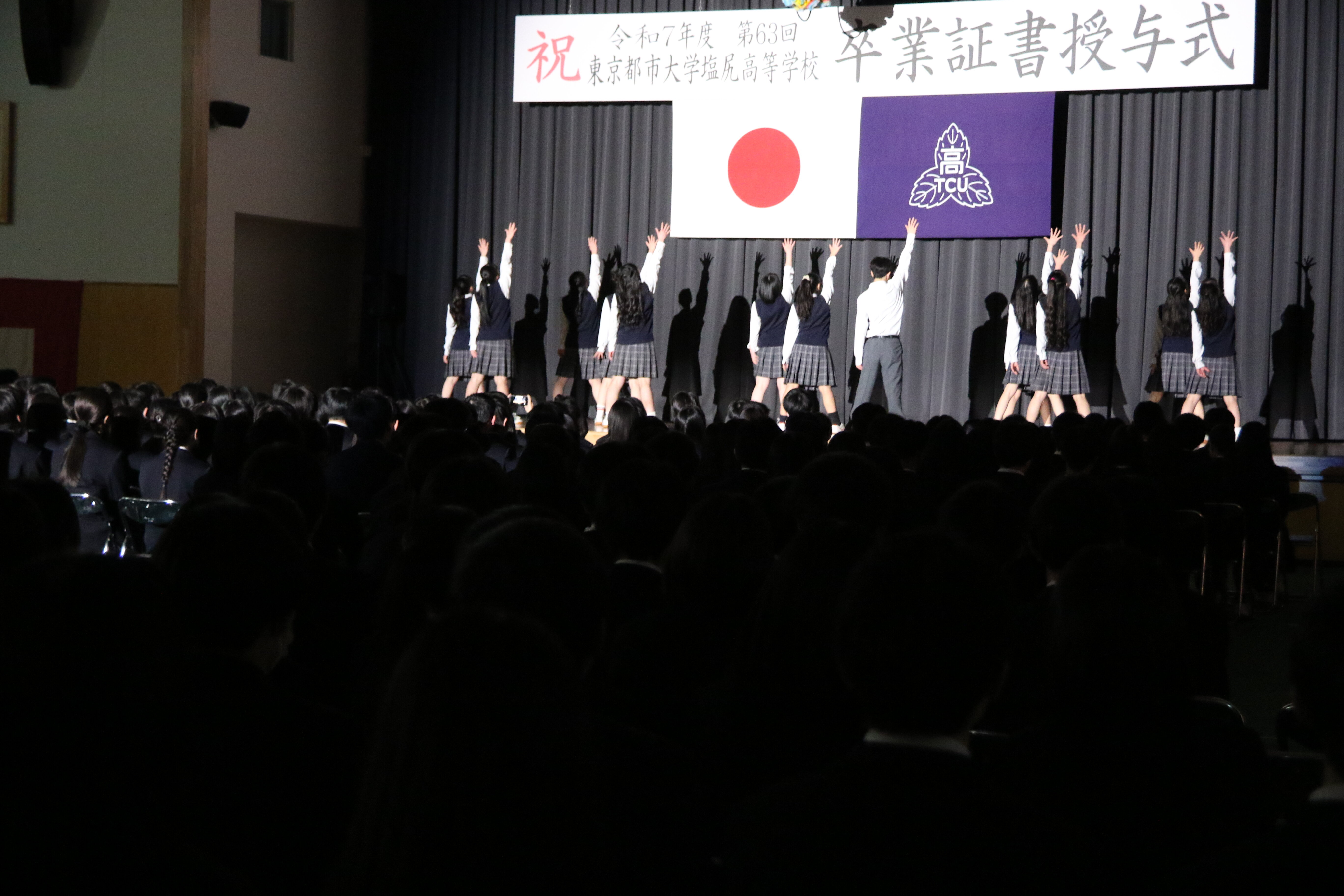 吹奏楽部、ダンス部、チア部による華やかな発表のあと、全校生徒参加によるTCUクイズ大会も大いに盛り上がりました。また、学校行事をまとめた映像が披露されると、大歓声や笑い声が上がったり、先輩との別れを惜しんで涙する場面があったりと、在校生や先生方の心のこもったイベントに校内は一気に卒業式ムードに変わりました。Creation and Dignityという教育理念が、在校生の主体性によって新たな行事に体現された素晴らしいイベントでした。