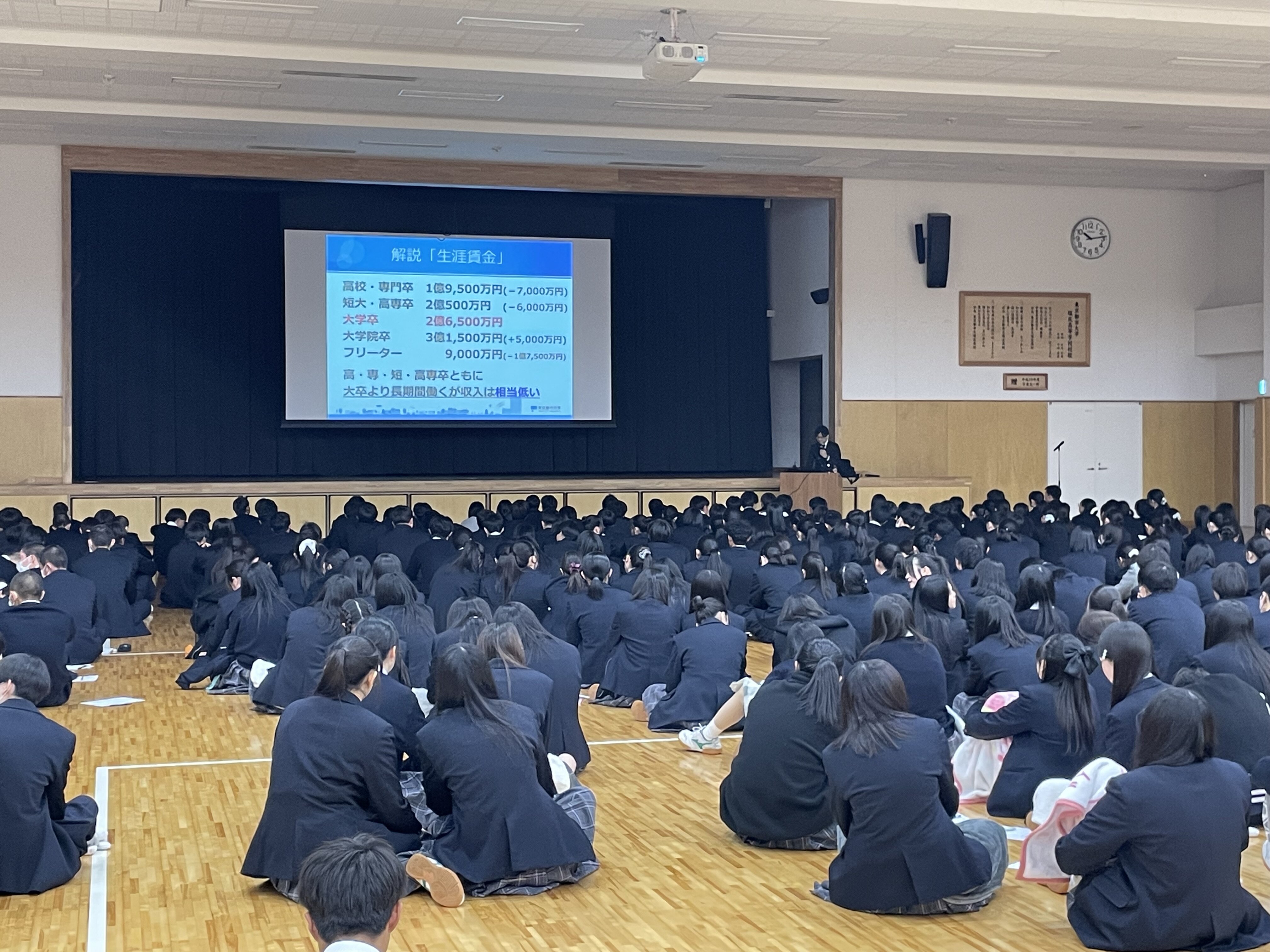 1年生たちは、もうすぐ2年生になります。次のステップへの入試本番まではもう少し時間がありますが、文理選択や科目選択は、将来のことを考えて選ばなくてはなりません。生涯賃金をベースに、将来を考える充実した時間となりました。