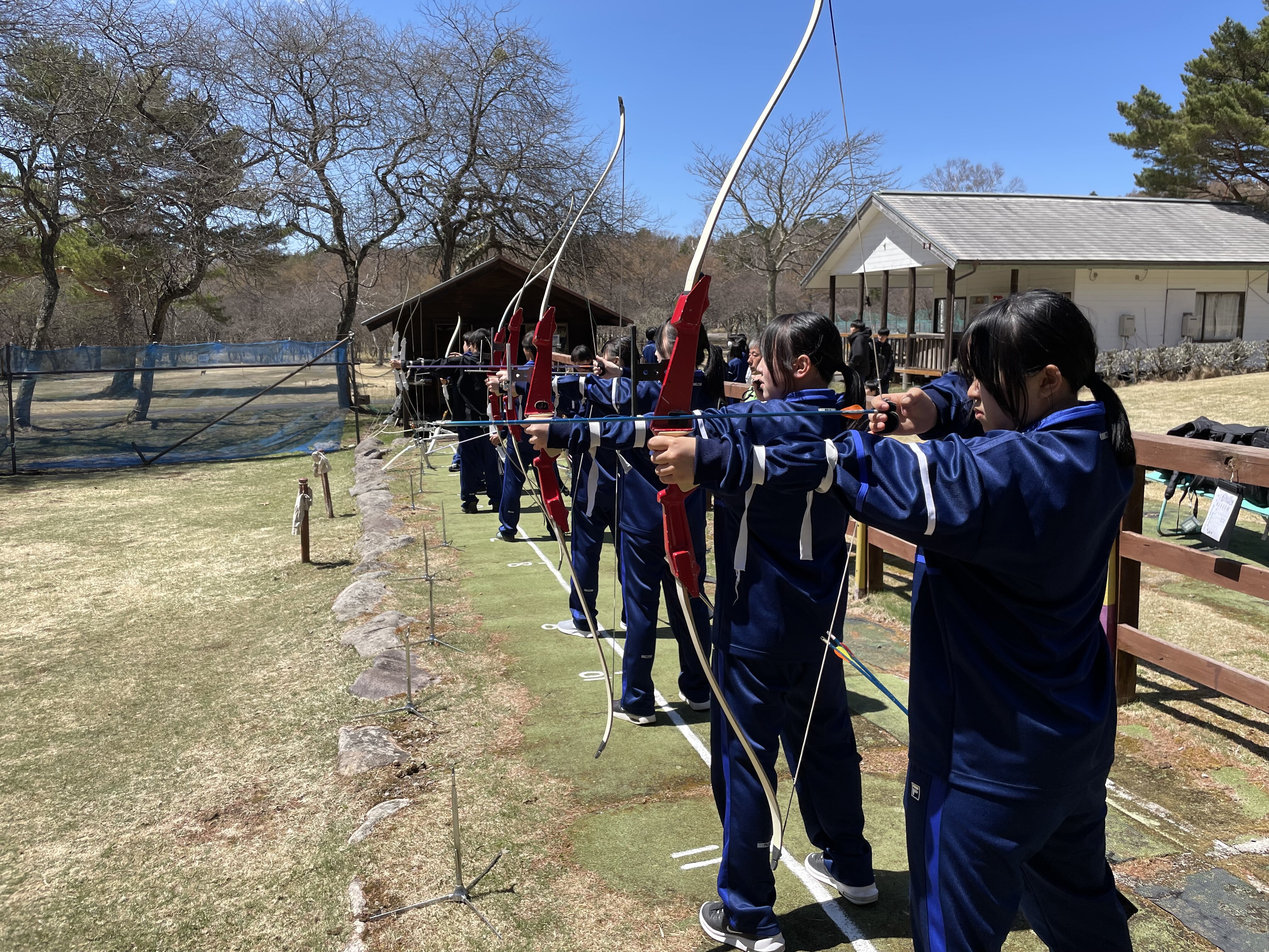 このうち1年生は、女神湖畔にあるマーガレットリフレクパークを訪れました。午前中はグループごとに、テニス、パターゴルフ、マレットゴルフ、アーチェリーなどのアクティビティに取り組み、自然の中で楽しい時間を過ごしました。互いに声を掛け合いながら活動する姿が多く見られ、クラスの垣根を越えて交流を深める様子も伺えました。