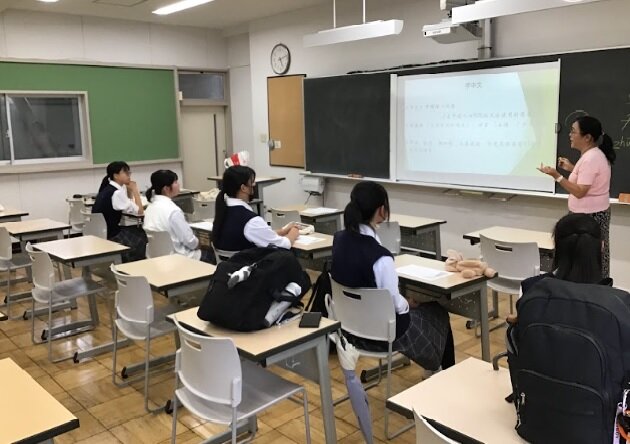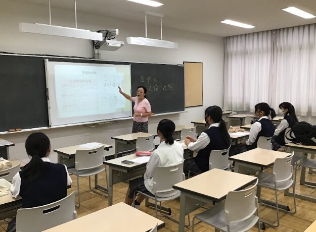 第1回目の授業では、中国語のピンイン(拼音)を学びながら、実際に発音を行い、言語に親しみました。受講した生徒の中には、10月に予定されている中国研修(本校の姉妹校である上海市甘泉外国語中学で実施)に参加する生徒もいます。中国語の奥深さに触れることで、多言語の魅力を改めて感じることができました。