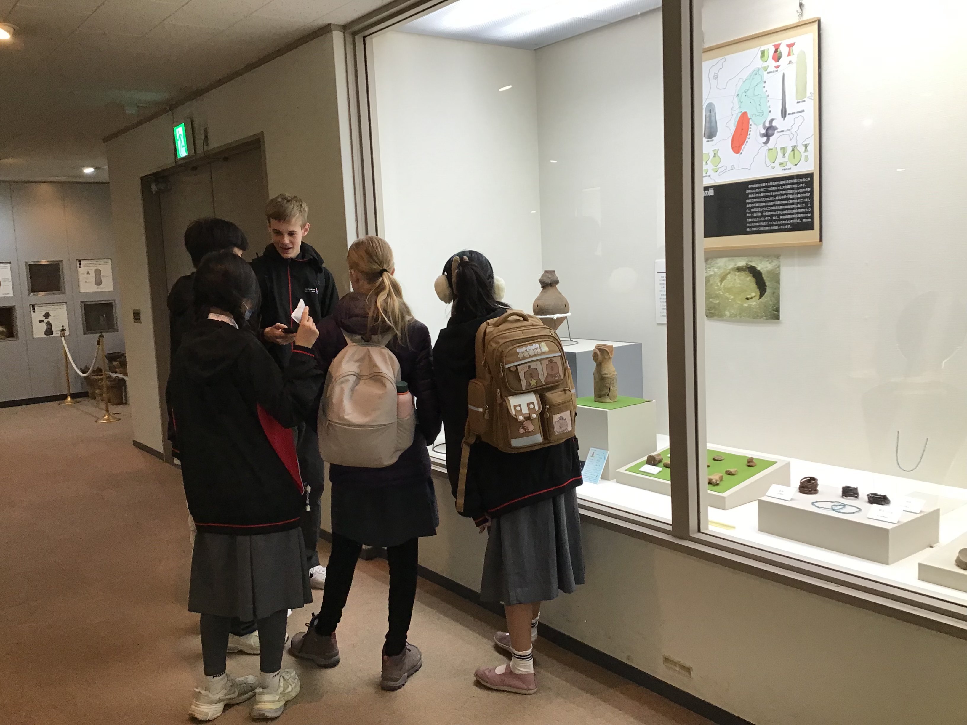 午後は塩尻市平出博物館を訪れ、古代日本の暮らしについて学びました。初めて触れる土器や遺跡に、生徒たちは興味津々で、とても感動した様子でした。