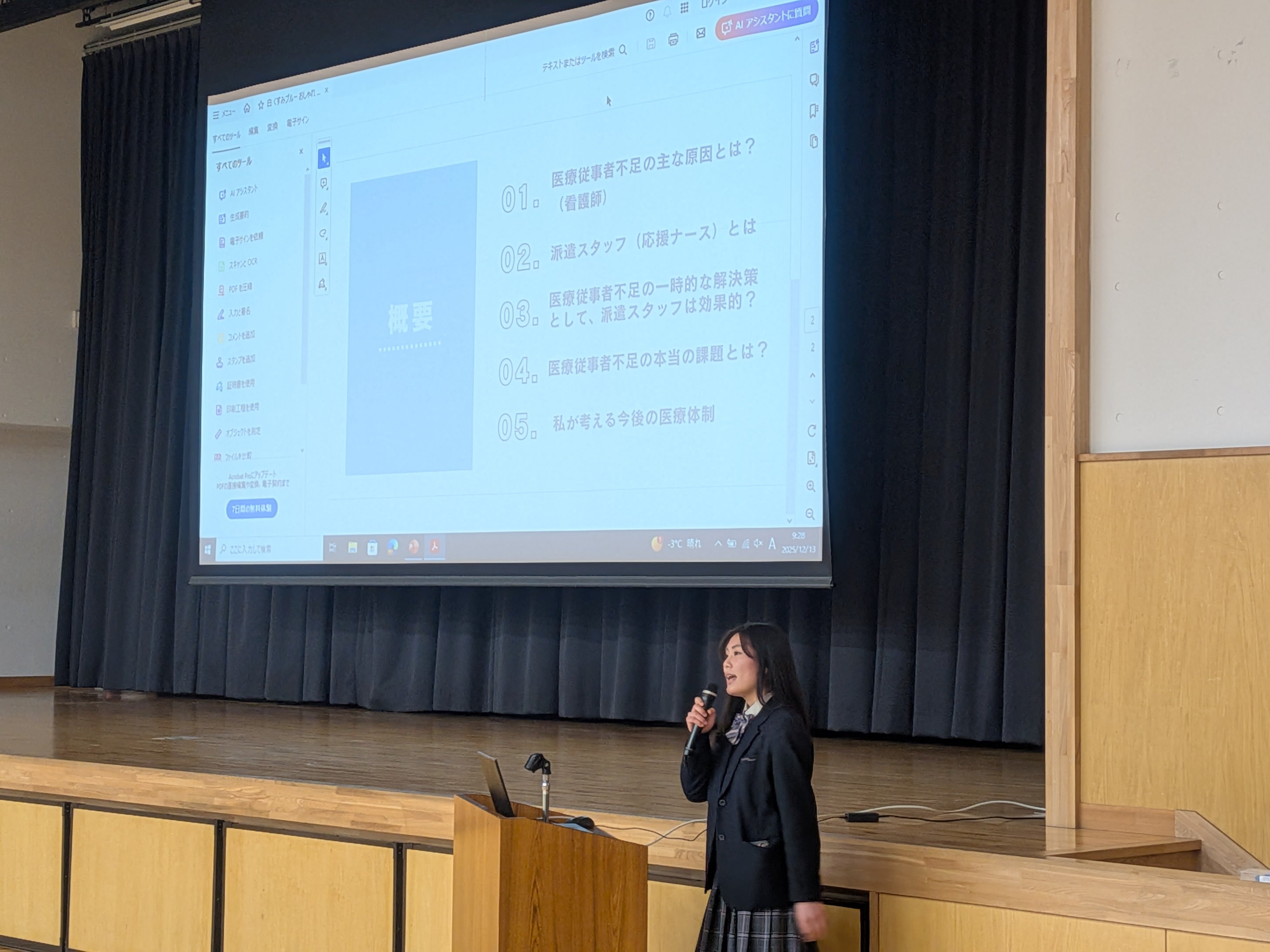 本校の探究活動は、フィールドワークを基盤とし、実社会とつながる学びを大切にしています。今回の成果発表会を通して、生徒一人ひとりが自らの進路と社会課題を結び付けて考える意義を改めて実感する機会となりました。