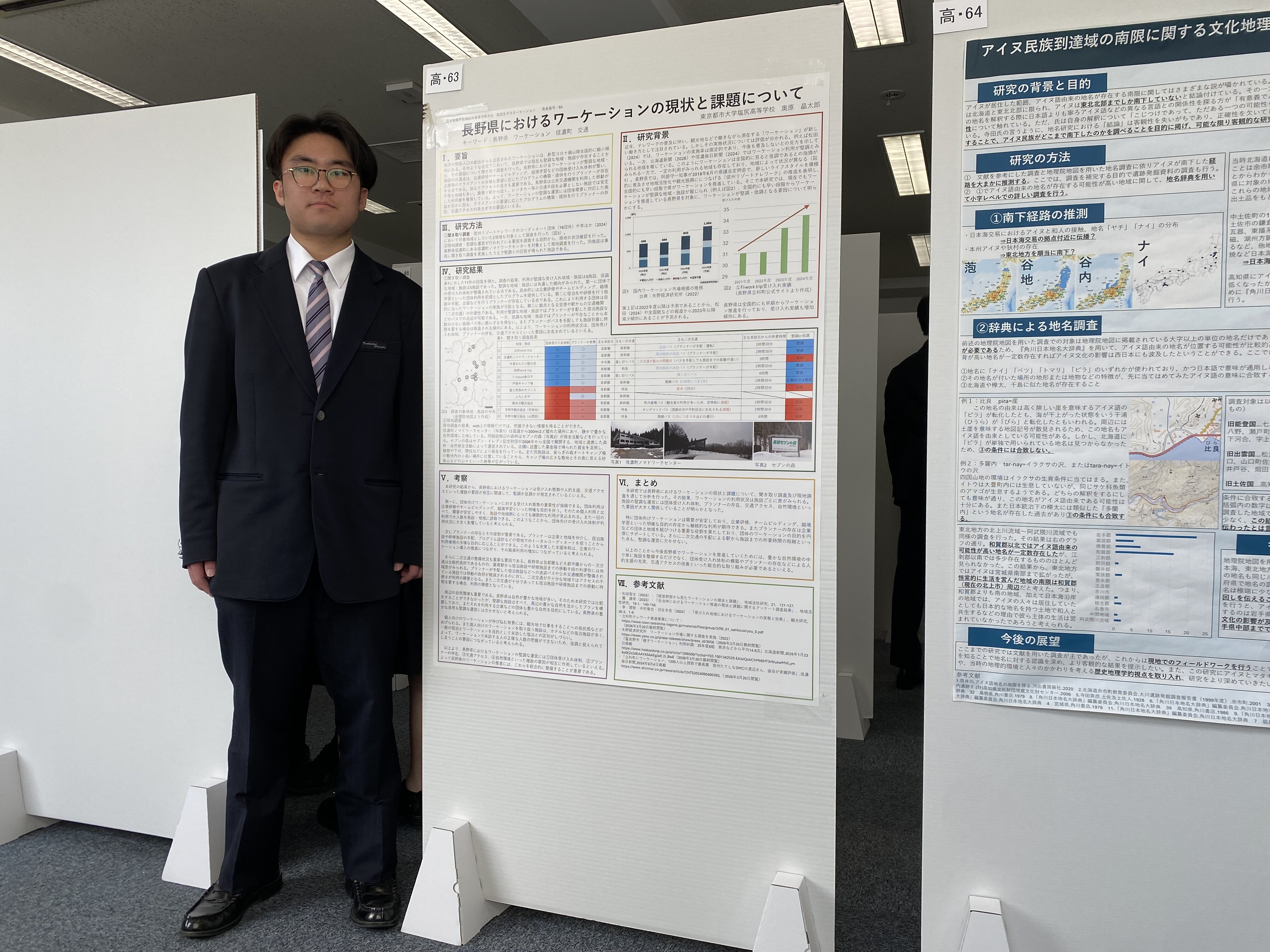 3月27日(金)に法政大学市ヶ谷キャンパスで開催された、2026年日本地理学会春季学術大会の高校生ポスターセッションにおいて、2TA探究コースの奥原晶太郎くんが発表しました。