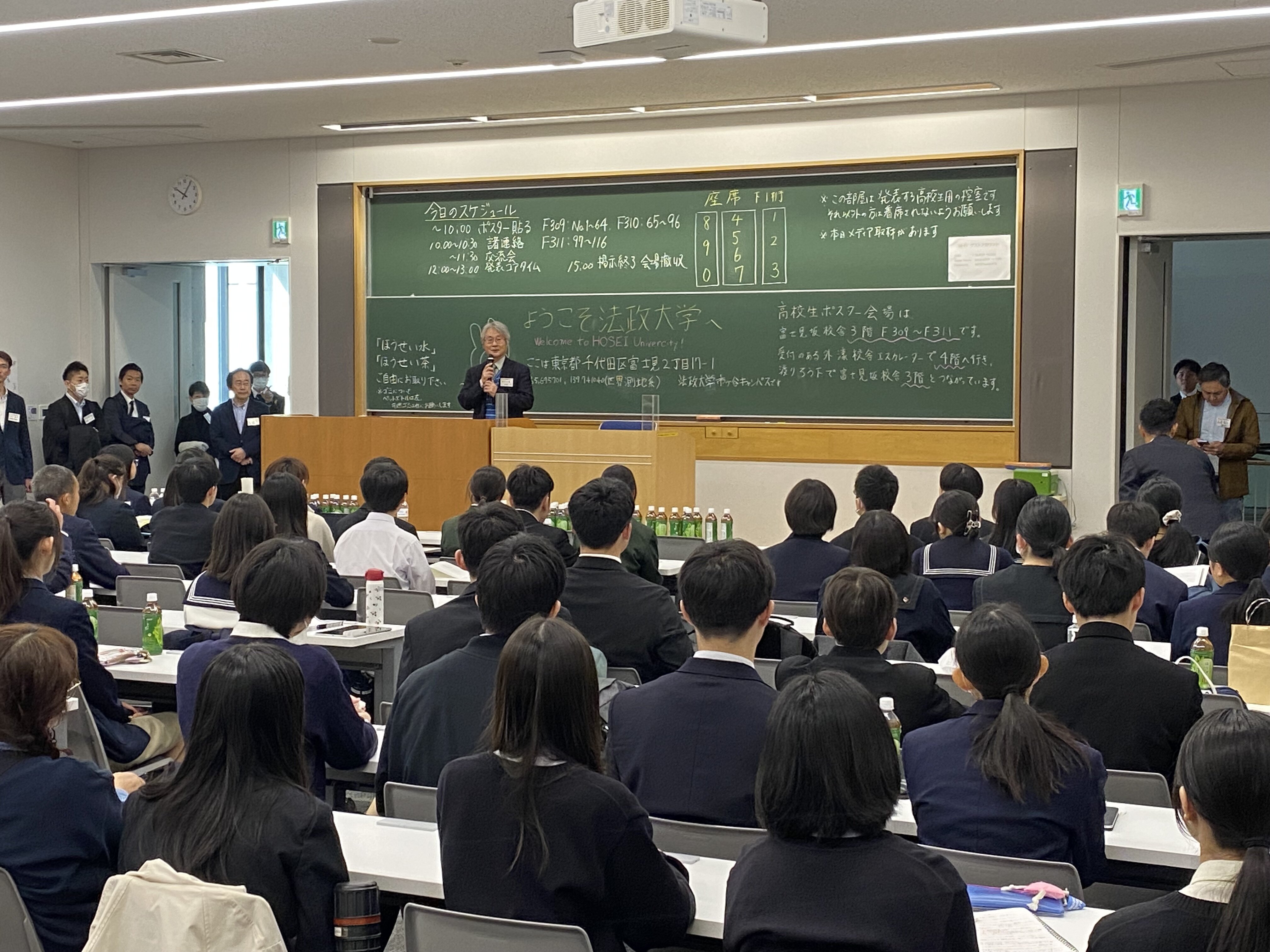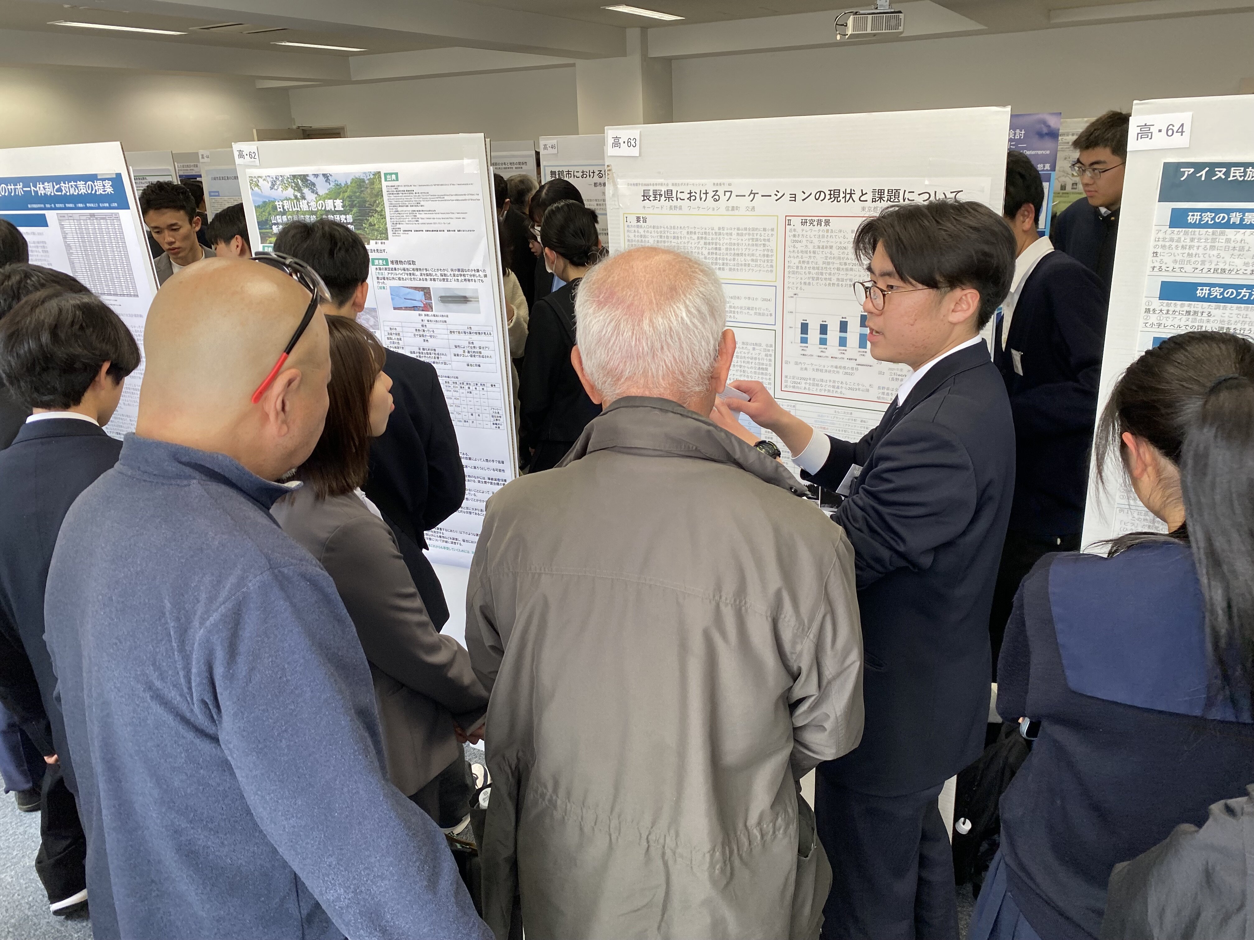 今年度は過去最多の106の発表がありました。会場は通るのもやっとなくらい多くの参加者が訪れ、これまでにない大変熱気に満ちた大会になりました。1年生の頃から地道に探究してきた奥原くんも、多くの発表者のポスターを見るなかで、自身の取り組みが全国の高校からの選りすぐりの発表者と何ら引けを取らない探究活動になっていることを実感していました。